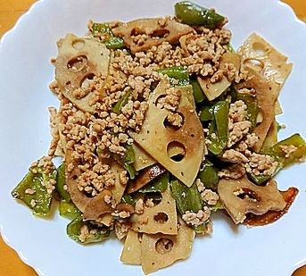 れんこんと豚ミンチの甘辛炒め レシピ 作り方 By 修行中のあーか クックパッド