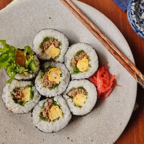 お花見のお弁当にも 水菜と肉みその簡単のり巻き 暮らしニスタ